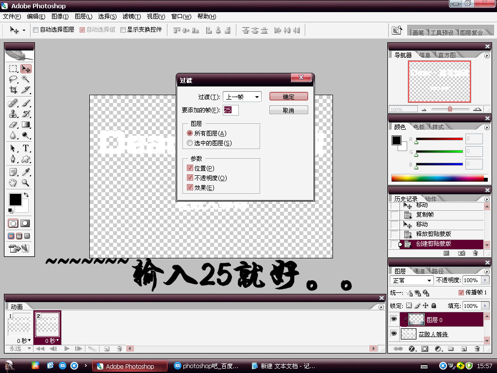 第二帧把图片挪到最下面直到看不见为止(也最好按住Shift键),好了,然后过渡25帧,然后Ctrl+Shift+Alt+S保存吧。。