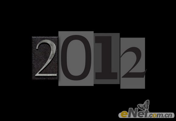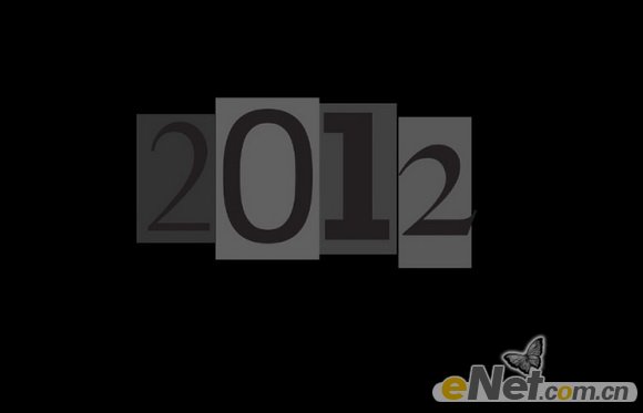 调整矩形的大小,使它不规则的对齐有凹凸的效果,在每块矩形上键入2012数字。