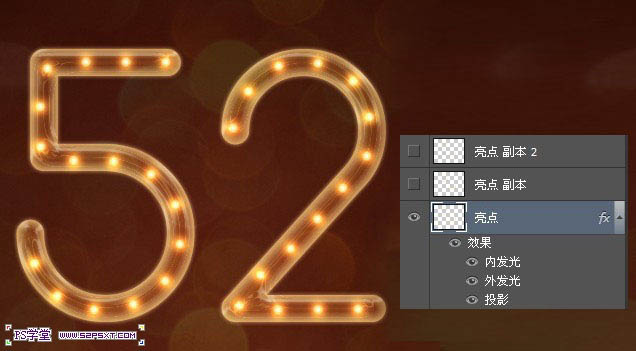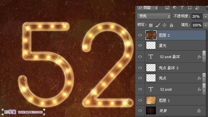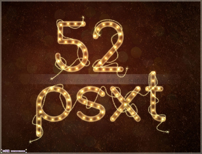 站长图库 - Photoshop制作华丽的金色霓虹灯字