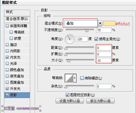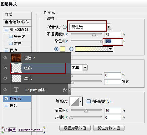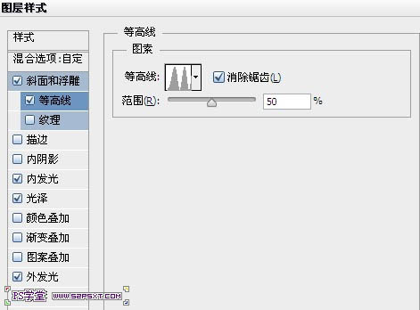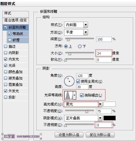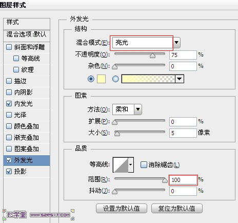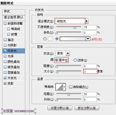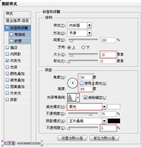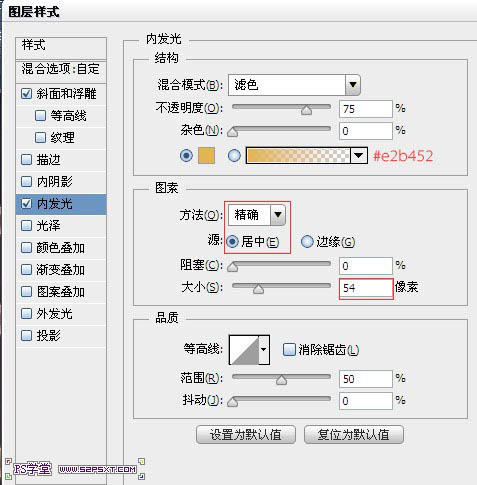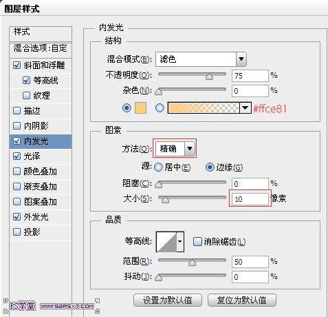 11、复制两次亮点图层,将两个亮点图层的眼睛关掉。对原始的亮点图层设置图层样式如下。