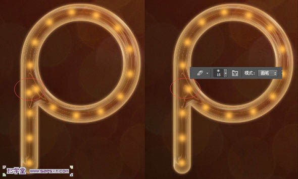 10、用橡皮擦工具将相交点的重复亮点擦拭干净。