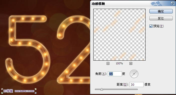 13、选择第二个亮点副本图层,进行动感模糊,改变下方向。这样我们就做出了闪光的感觉。