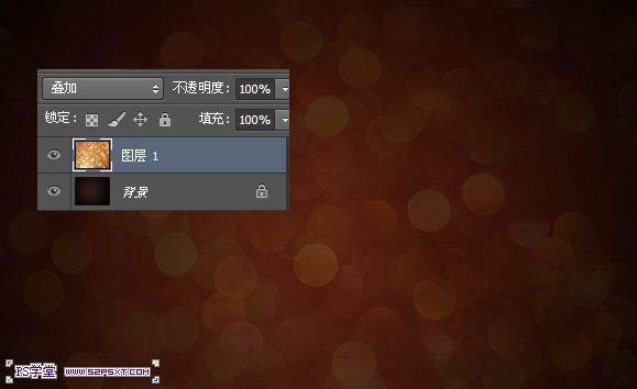 2、打开素材1,拉入画布中,调整大小摆放好位置,我们将图层模式改为叠加。