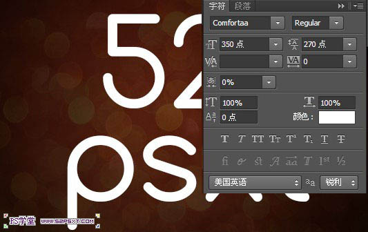 3、打上白色字体"52psxt",字体我选择的是comfortaa。大小设置如下。