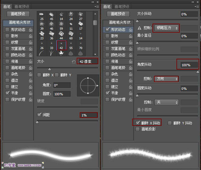 21、设置画笔为1px,硬度100%,颜色为#fffdef,右击描边路径,得到链条的效果。