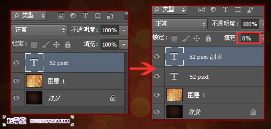 4、我复制一层字体图层,将字体图层的填充为0%。