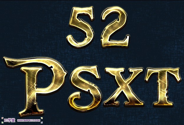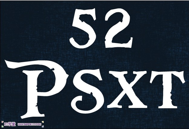 1.打开背景图层,这里我选用的字体是piece of Eight, 白色,打上"52psxt"(同样分行的字体,每行一个图层)