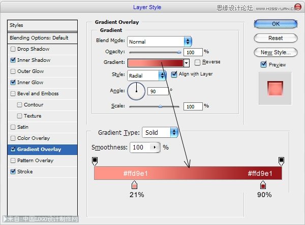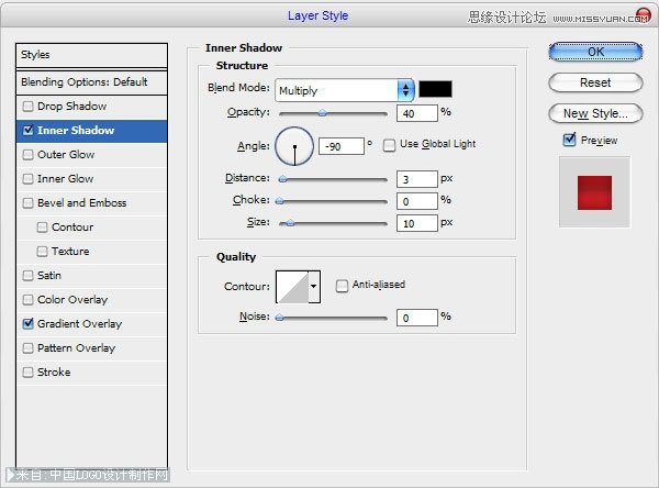 之后,应用下面的图层样式到这一层:
