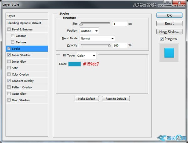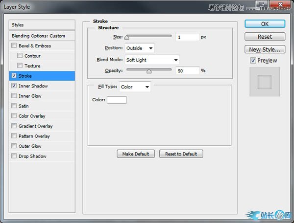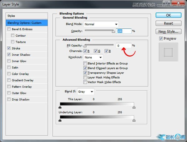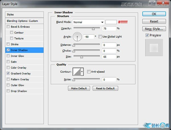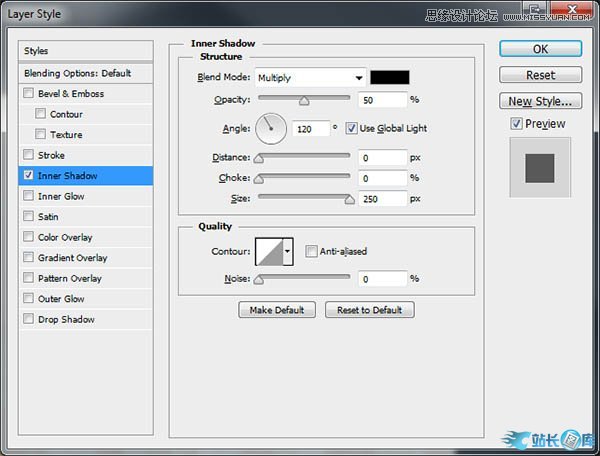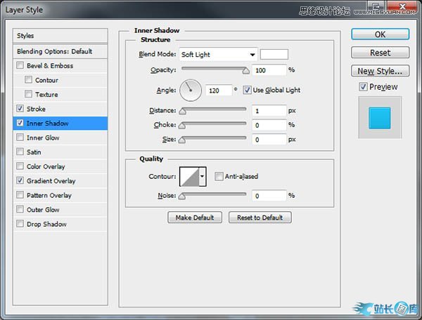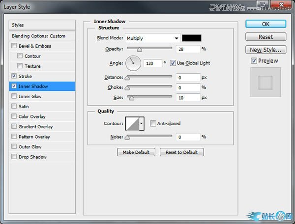 20、再设置图层样式,分别设置混合选项、描边、内阴影,参数及效果如下图。