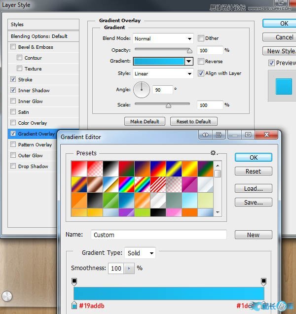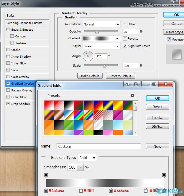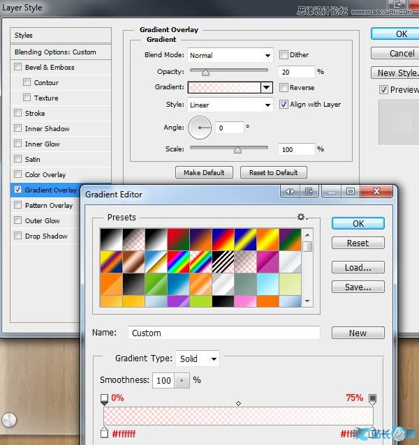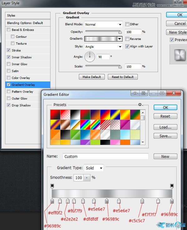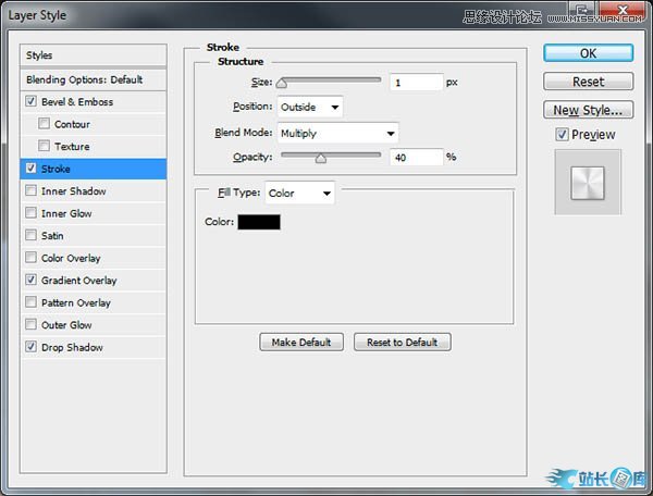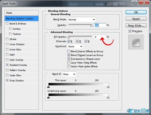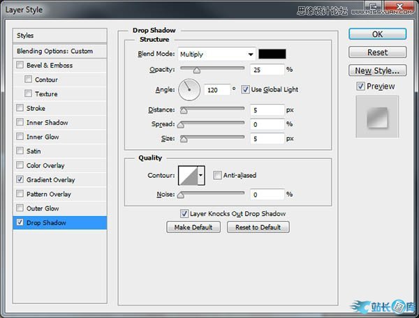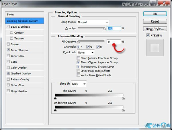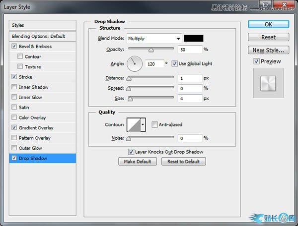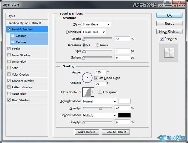 7、先清除当前图层样式后再设置新的样式,参数及效果如下图。