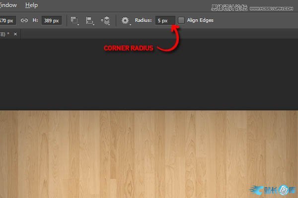 4、在画布中心位置拉出下图所示的圆角矩形。
