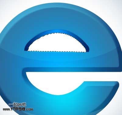 建新层,调出e字母选区,填充白色,然后做如下椭圆选区,删除,图层不透明度15%,这是底部高光。