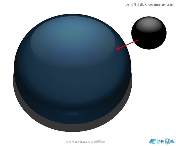 在光滑高光之下又在按钮底部之上。