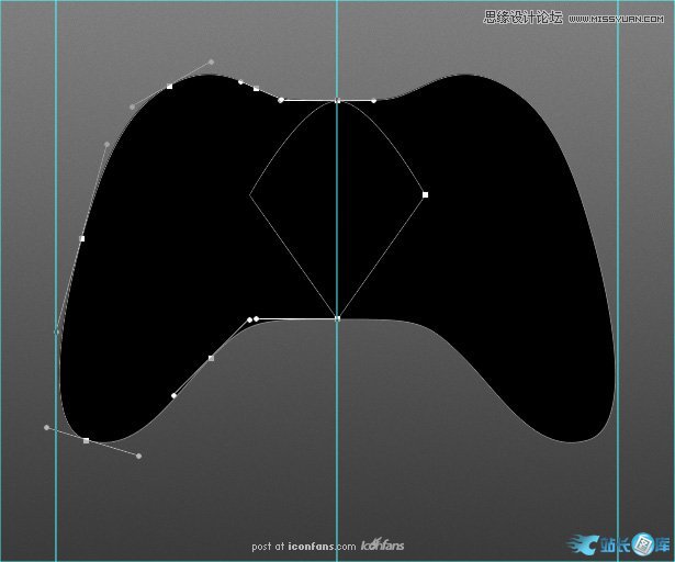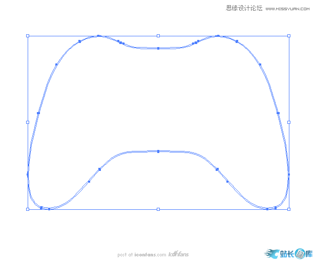 然后就正式开始制作手柄的主体部分了。先使用钢笔工具尽可能用最少的锚点画出游戏手柄的左半边,然后复制