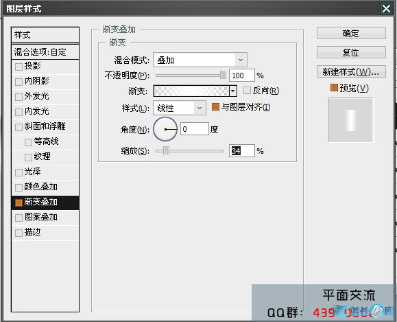 10复制形状5 命为形状6 设置叠加 ,添加图层样式 渐变叠加 还是中心白 跟形状5一样 只修改缩放。