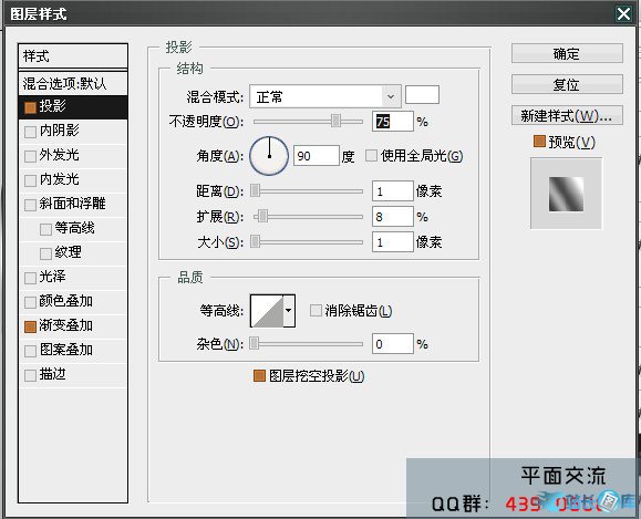 4.复制形状1用移动工具,稍微往上移动 ,添加图层样式 投影请看下图。渐变叠加 颜色-ffffff-