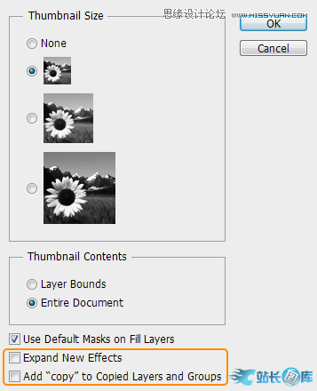 对每次复制图层都在图层名称后面添加“副本(copy)”的字眼很是恼火?同时恼火的是每次复制粘贴图层效果的时候图层效果就会扩张?可以图层面板选项中将两者关闭。
