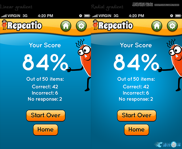 使用径向渐变有时候会看起来有点扁平。试试用径向渐变作为背景,还可以用内发光来强调。