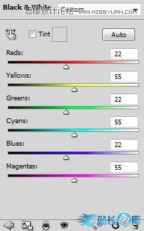 6、添加下面的图像调整层并已模特为底层执行剪贴蒙版命令:黑白。