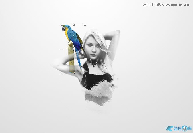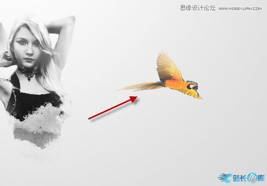 10、打开鹦鹉1图像,将鹦鹉粘贴到我们的文件中,调整位置如下图。