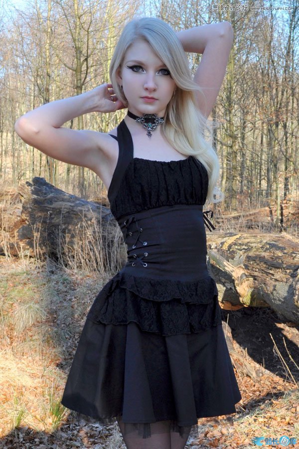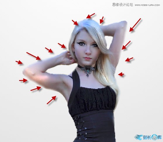 30、用软的白色笔刷画一些高光在模特周围增加光效。