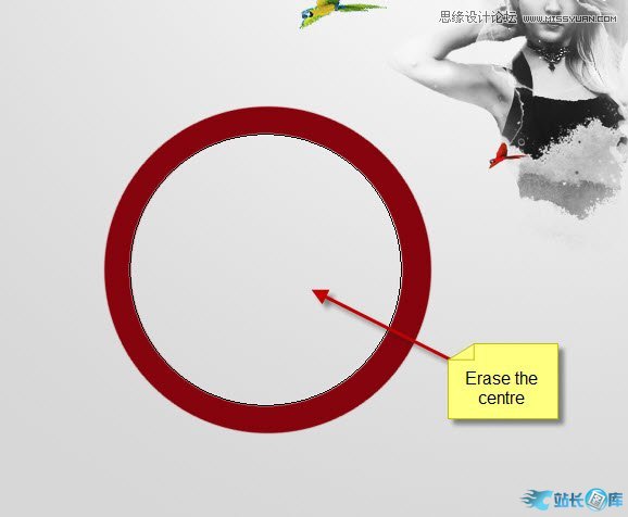 16、我们现在添加红色圆形在模特周围以造成一些抽象的效果-新建一个新的图层用硬笔刷画一个大的圆形。