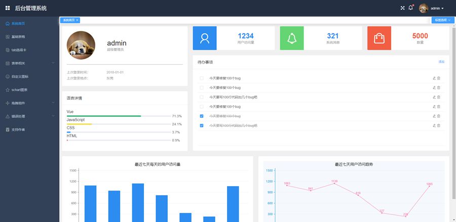 中文线上预览:https://panjiachen.gitee.io/vue-element-admin/#/dashboard