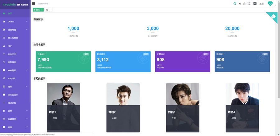 线上地址:https://mgbq.github.io/vue-permission/#/dashboard/dashboard