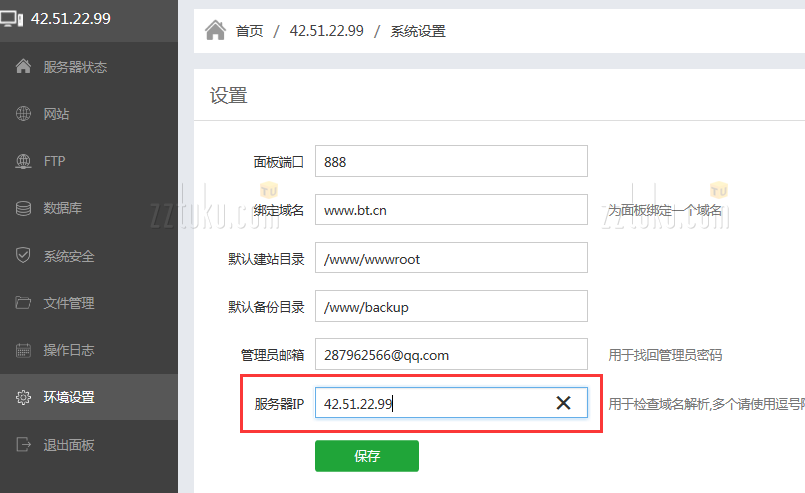 用公网IP+888端口在浏览器上登入宝塔linux管理助手后,进入“环境设置”,在服务器IP那一栏输入自己的公网IP即可。
