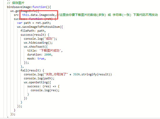src: this.data.imagecode,//这里放你要下载图片的数组(多张) 或 字符串(一张) 下面代码不用改动