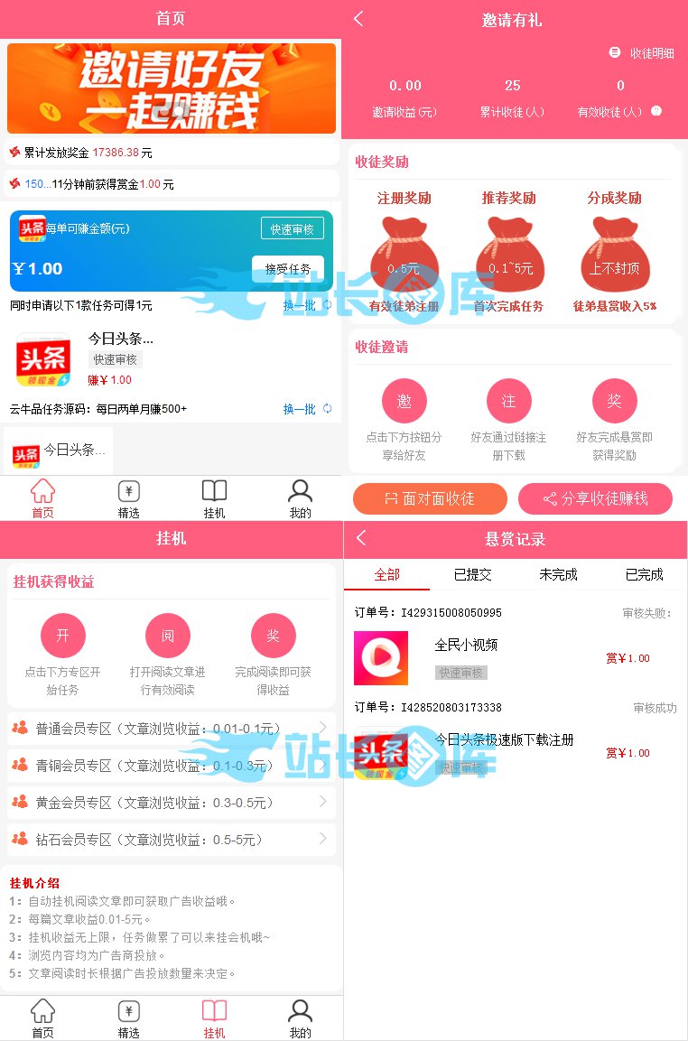 thinkphp系统手机悬赏任务赚钱源码+自动挂机阅读文章源码