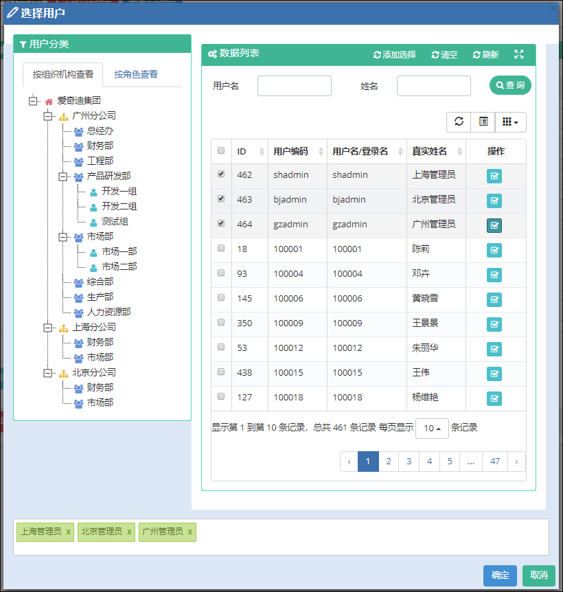 以及在选择用户信息页面的时候,也需要根据条件进行筛选用户。