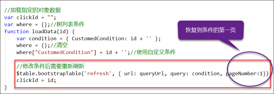 $table.bootstrapTable('refresh', { url: queryUrl, query: condition, pageNumber:1});