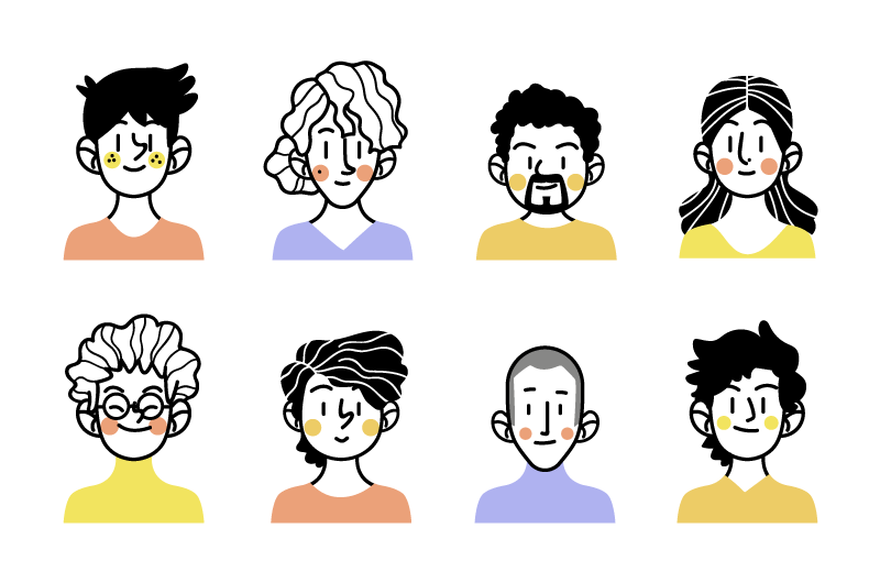 转载请声明来自:站长图库 - 八个涂鸦风格的人物头像矢量素材使用声明: