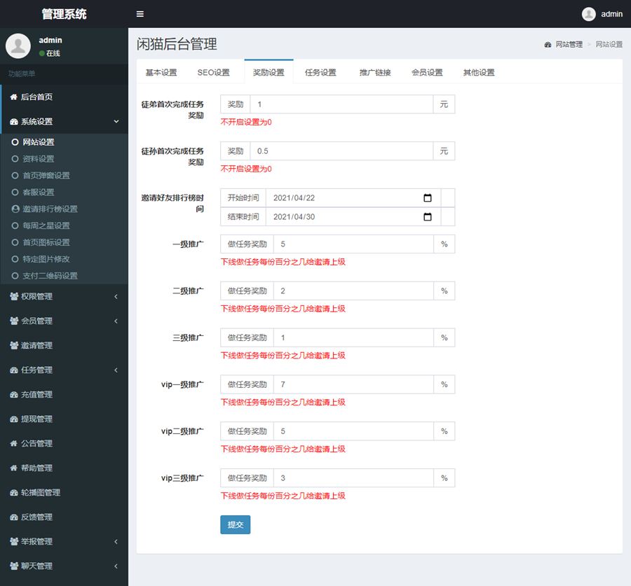 2、接单排行榜奖励、邀请排行、新手任务、每日任务(后台设置相应奖励奖励)