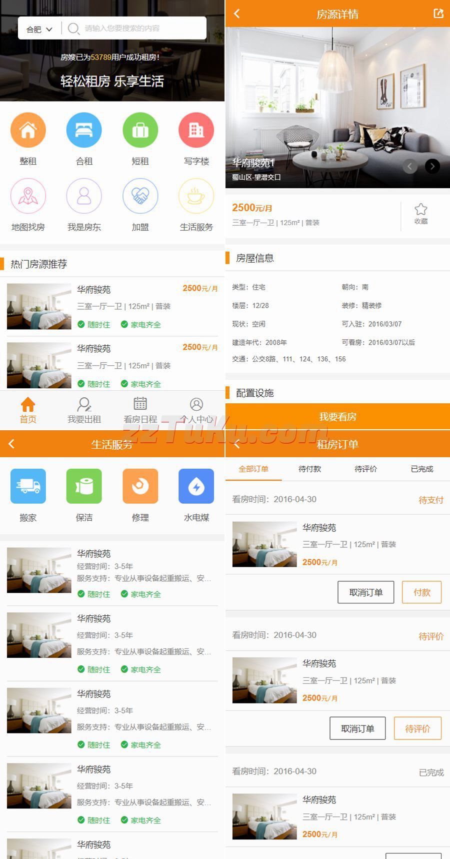 橙色的租房网站整站模板,租房商城手机HTML整站模板。