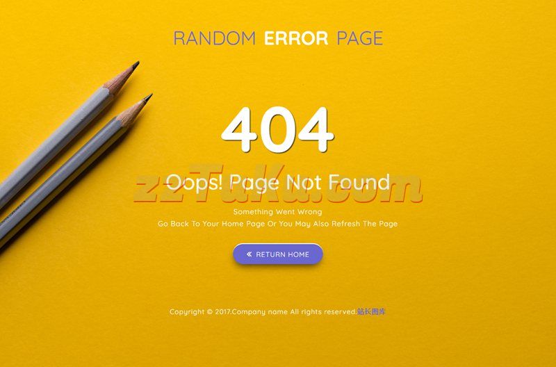 转载请声明来自:站长图库 - 铅笔黄创意404网页模板使用声明: