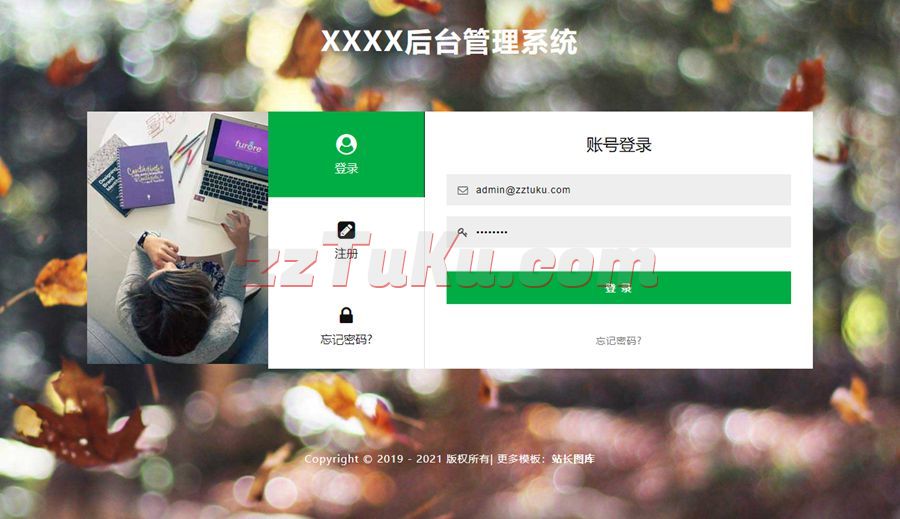 转载请声明来自:站长图库 - vue登录注册表单切换背景模板使用声明:
