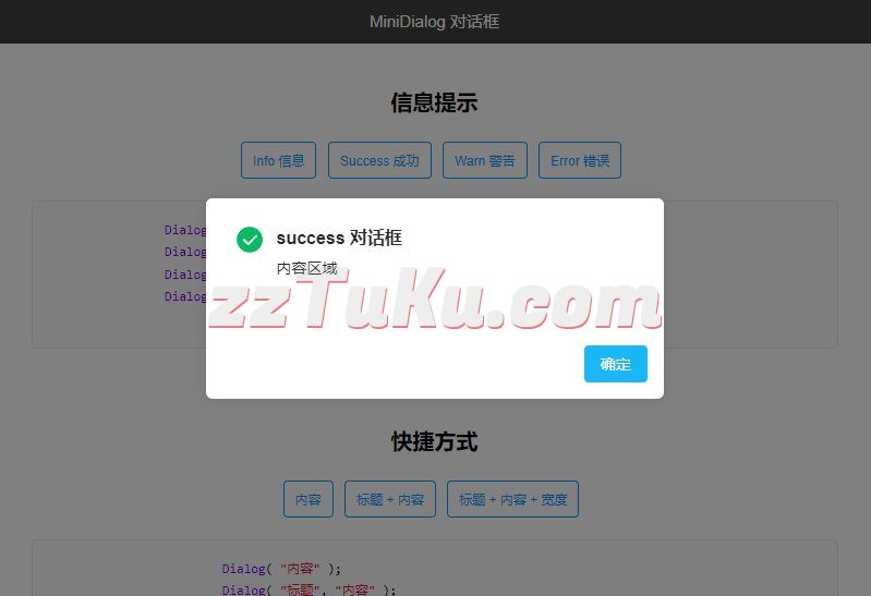 转载请声明来自:站长图库 - MiniDialog弹窗对话框插件使用声明: