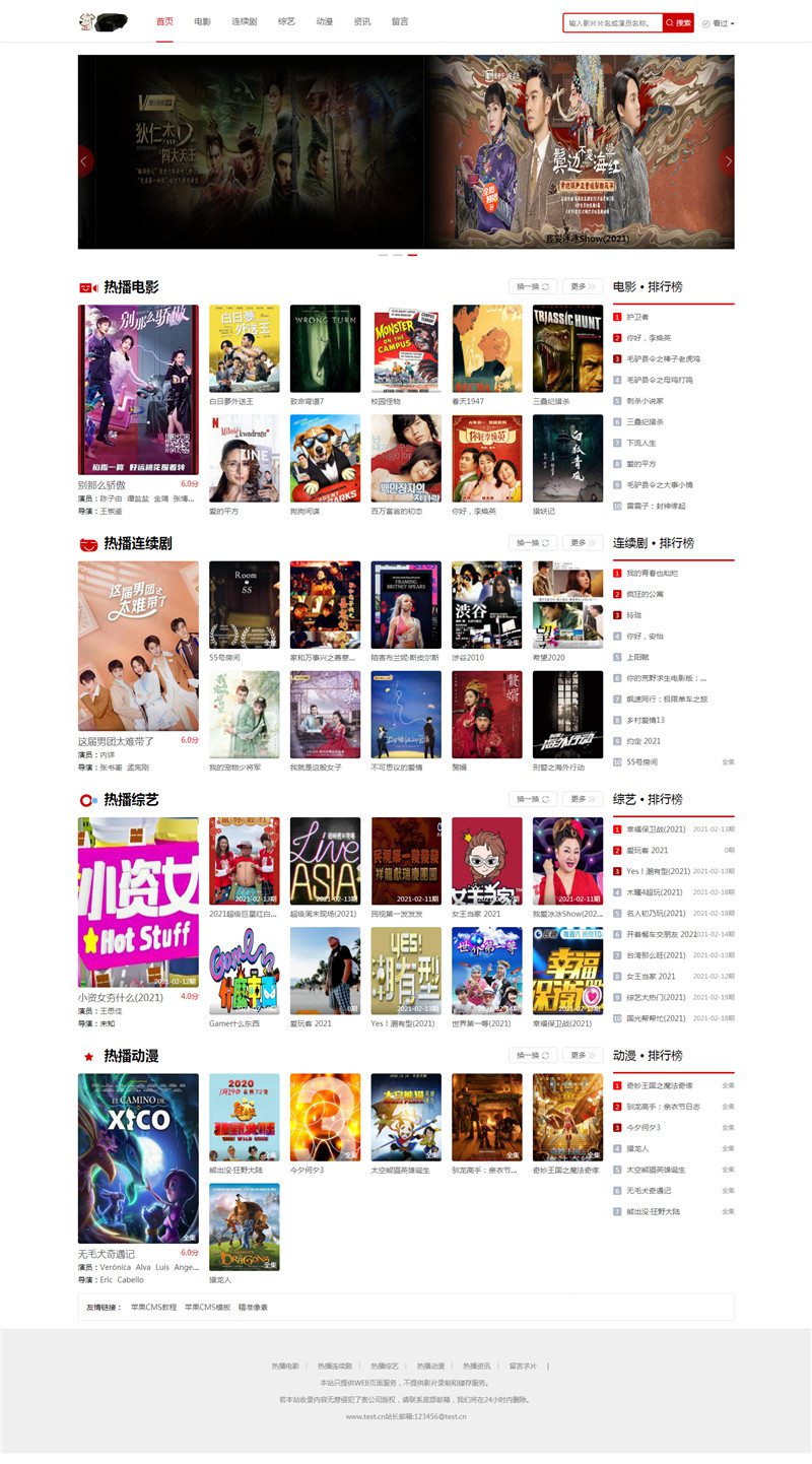 转载请声明来自:站长图库 - 苹果CMSV10红色自适应网站模板使用声明: