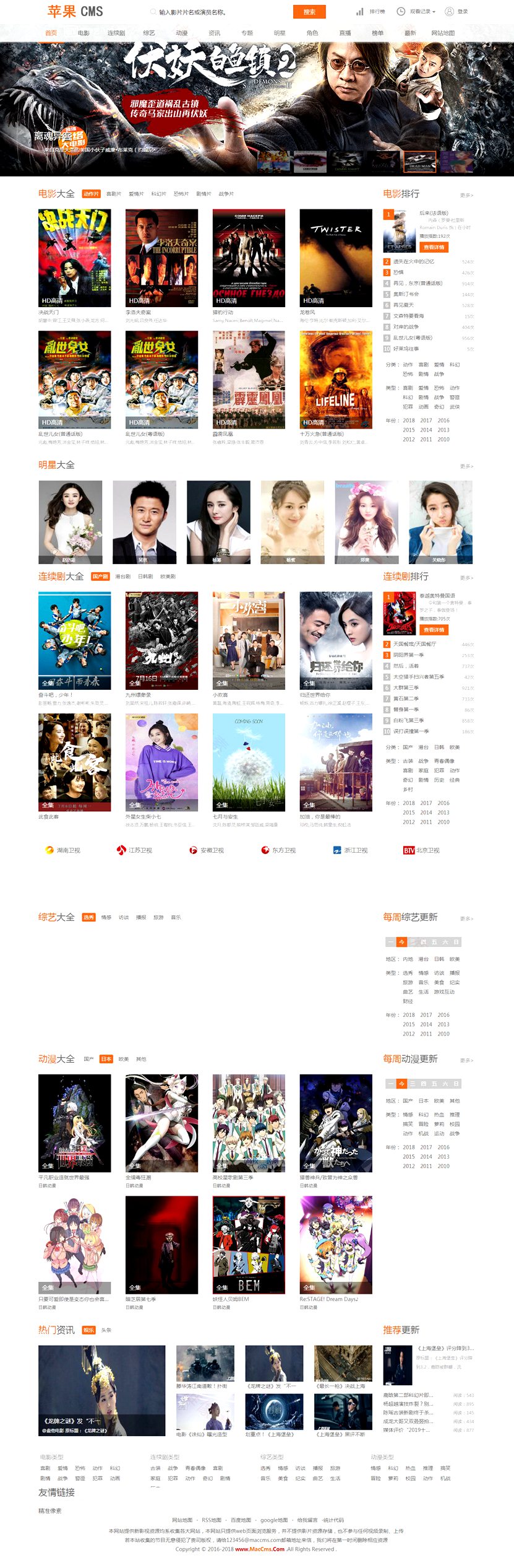 模板比较全面首页、列表、播放页、新闻列表页、新闻内容页、排行榜、网站地图等等都有。