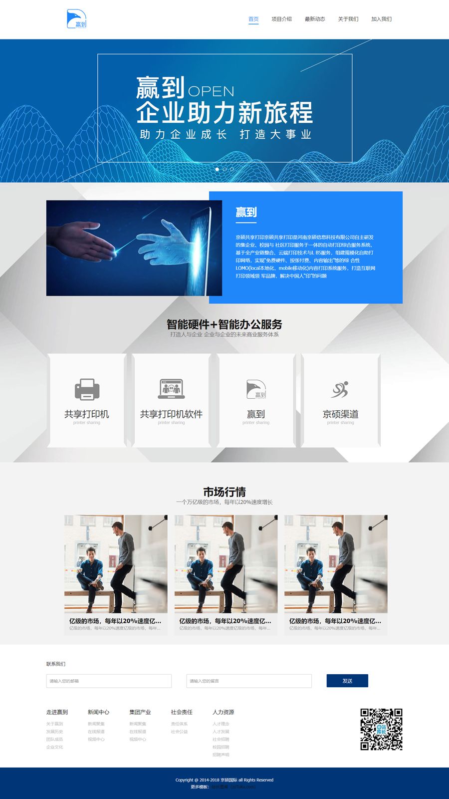 蓝色共享经济打印机静态HTML网站模板