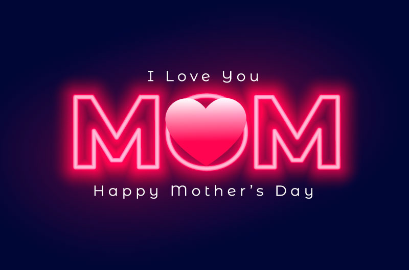 霓虹灯MOM字母设计母亲节快乐矢量素材