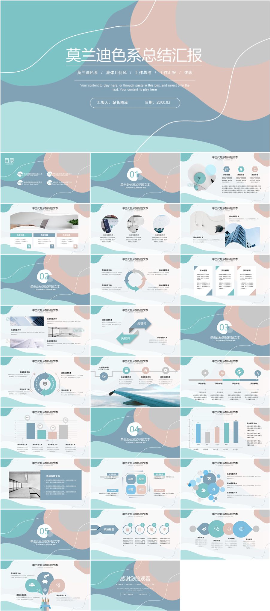 转载请声明来自:站长图库 - 流动动感线条莫兰迪色系PPT模板使用声明: