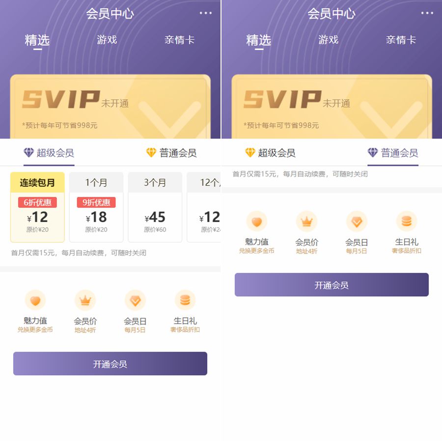 手机端vip会员开通页面HTML模板