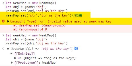 weakMap.set('str','str as the key')//报错代码执行结果如下: