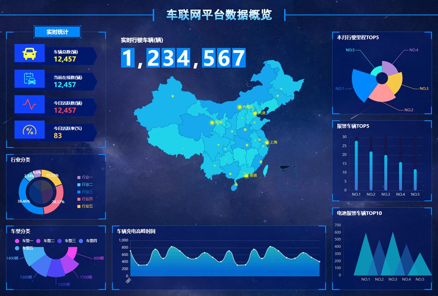 转载请声明来自:站长图库 - Echarts新能源车联网综合大数据平台使用声明: