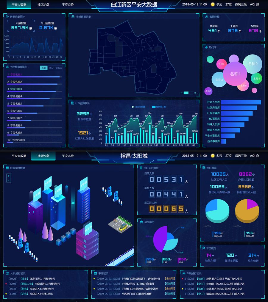 转载请声明来自:站长图库 - 智慧小区居民平安大数据Echarts模板使用声明: