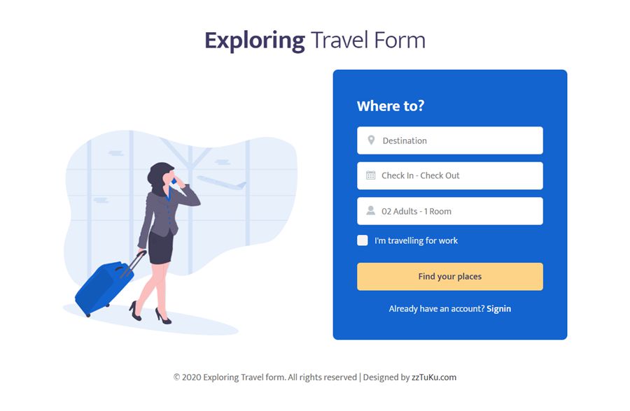转载请声明来自:站长图库 - 简约的html旅行搜索表单使用声明: