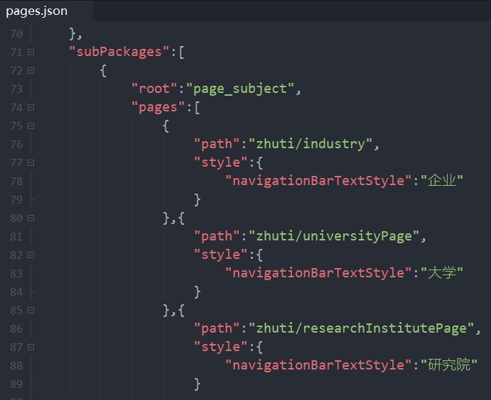 在pages.json中新建数组"subPackages",数组中包含两个参数:1.root:为子包的根目录,2.pages:子包由哪些页面组成,参数同pages;